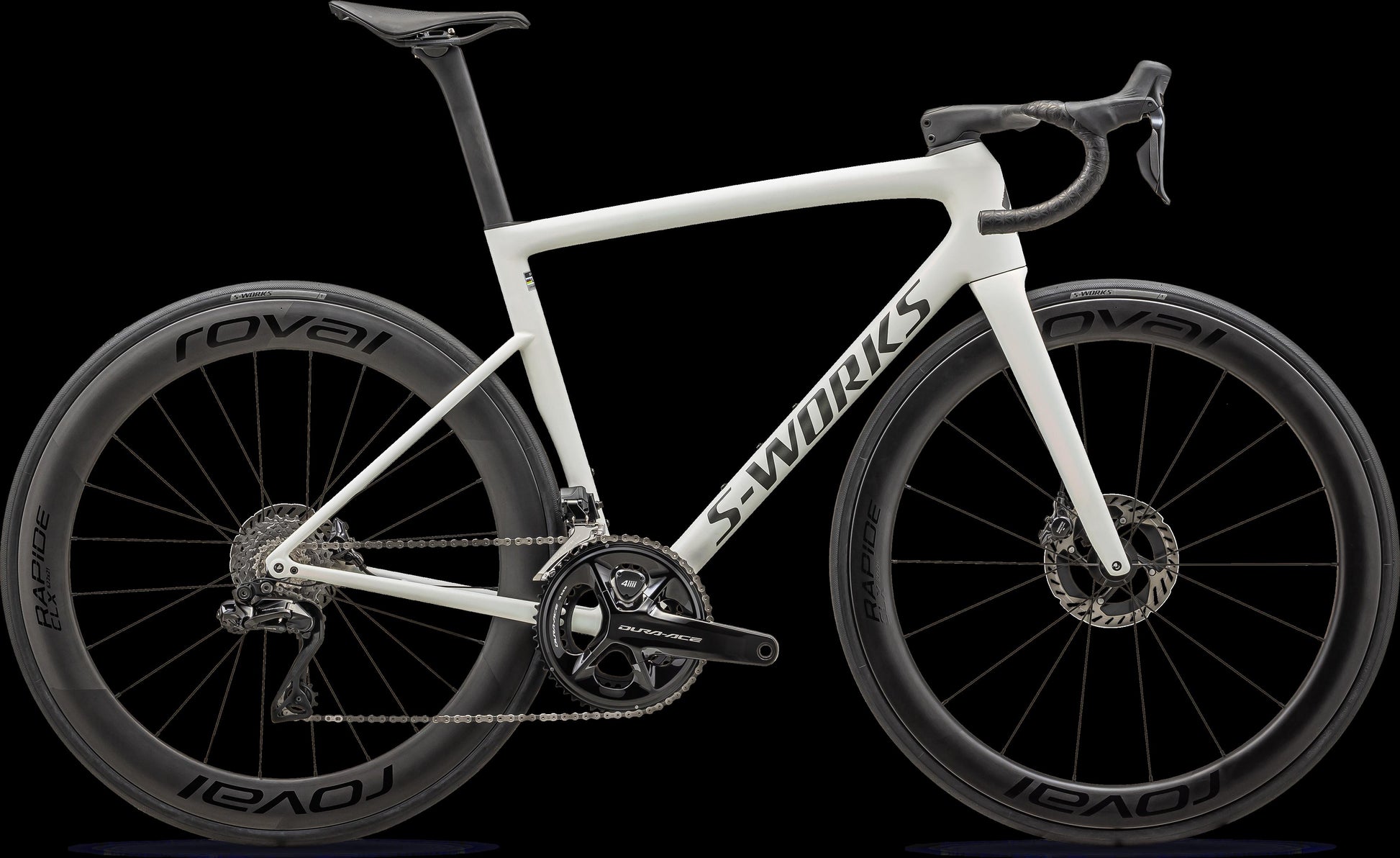 "S-Works Tarmac SL8 - Shimano Dura-Ace Di2Nothing is faster than the Tarmac SL8 thanks to a combination of aerodynamics, lightweight, and ride quality previously thought impossible. After eight generations and over two decades of development, it’s more than the fastest Tarmac ever - it’s the world’s fastest race bike. Your legs up for it?Aerodynamics or lightweight alone don’t win races - speed is what matters. Delivering that speed requires creating an uncompromising combination of aerodynamics, lightweight, stiffness, and compliance. Through race simulations using real world data our Ride Science team knows the Tarmac SL8 is the fastest race bike ever made on the routes that matter - 16.6 seconds faster over 40km, 128 seconds faster over Milan San Remo, 20 seconds faster over the legendary Tourmalet climb.AERO IN EVERYTHINGWe’re putting aero where it matters - the leading edge - not just where it looks good. In the process we’ve created our most aerodynamic road bike ever. Yes, it’s more aero than the Venge. Clean air is optimized for maximum advantage with the Tarmac’s new nose cone - the Speed Sniffer. By moving the steer tube back - the tube that determines head tube width - the leading edge of the head tube can be much sharper, delivering a much lower drag shape. Utilizing new UCI rules, the Tarmac SL8 has the narrowest, most aero seat post we’ve ever made ensuring fast moving, dirty air around the legs can flow back more cleanly. Doesn’t victory smell sweet?MINIMUM WEIGHT, MAXIMUM AEROTarmac SL8 took learnings from Aethos to be easily built at the UCI minimum with a full aero set up. The team delivered a mind bending, scale tickling 685 gram frame - 15% lighter than the Tarmac SL7 and lighter than anything on else on the World Tour*. With the ability to make lightweight a top priority in the down tube, seat tube, and rear of the bike lessons from Aethos were applied. The frame’s shape carries load so efficiently that extra carbon stiffness layers become redundant. *Unless of course you count the time Kasper Asgreen raced our 585 gram Aethos frame during a Tour stage.GOES LIKE HELL, RIDES LIKE HEAVENWith massive gains in stiffness-to-weight - an improvement of 33% over the SL7 - the Tarmac SL8 takes legendary handling, aggressive responsiveness and World Championship proven geometry to the next level. The bike is stiffer at the pedals, more precise at the bars, and combines it with a compliant ride in the saddle that sets a new benchmark for race bike comfort. Thanks to our Rider-First Engineering, every rider, regardless of size, gets the same unprecedented ride quality and handling. In the saddle the Tarmac SL8 delivers 6% more compliance, floating over rough road with a supple feel unique in the high strung world of race bikes. Tarmac’s proven geometry and 32mm tire clearance are identical to the SL7, ensuring easy adaptation and the versatility to run higher volume tires when needed.BEYOND GENDERThere can be more difference between two male cyclists than between a male and female. Gender alone doesn’t provide nearly enough data to specialize and that means creating male or female bikes is arbitrary and outdated. Every rider can get the next level advantage of Tarmac SL8. It’s time to go Beyond Gender.S-Works Tarmac SL8 is spec’d with only the best components. A full Shimano Dura-Ace 9200 series Di2 groupset with dual-sided power meter, and a Roval Rapide CLX II tubeless-ready wheelset is the perfect complement to the world’s fastest frame. All S-Works Tarmac SL8 models ship with a Roval Rapide cockpit to save weight and for the fastest possible leading edge."