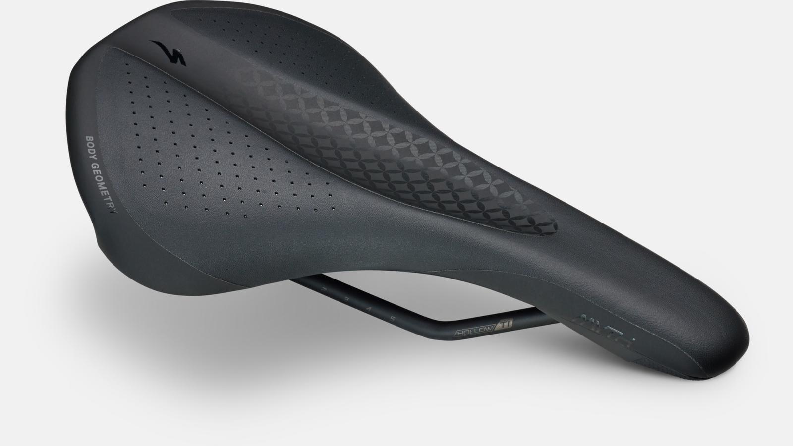 "Women's Myth ExpertThe Women's Myth Expert is the perfect saddle choice for any woman looking to ride comfortably over harsh terrain. The broad, flat shape allows for added control, while low-friction material on the nose and tail makes moving on and off the saddle stress-free. It also features lightweight titanium rails, and some our Women's Body Geometry hallmarks, like a pressure-relieving cutout and Level Two padding that sits somewhere between plush and firm.Women's Body Geometry cutout is scientifically tested and ergonomically designed.Lightweight EVA foam, tuned specifically for women, is supportive and plush.Low friction panels on the nose and tail improve pedaling efficiency and mobility while moving on and off the saddle.Lightweight, durable, and hollow titanium rails.Level 2 paddingMedium density foam for bike feel with additional cushioning.SWAT™-compatible mounts molded into the saddle base allow for sleek and integrated storage solutions.143mm/227g155mm/243g168mm/247g"